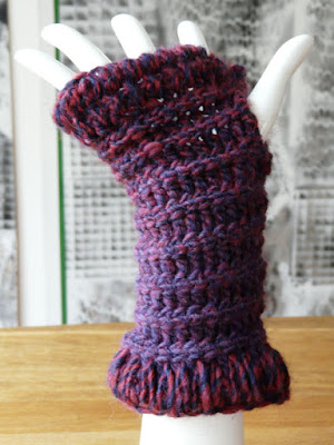 A free-form two ball/skein project (with spare) crocheting each line both at the same time. Mitt one ,then mitt two not literally at the same time, or else two pairs of hands would be requried and Im no godess I only have one set ;-)