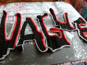 Fourth canvas in my returning home dark compilation of feelings, if this where Star Wars it would be the Dark side art the type Darth Vader would have had in his board room. This time I'm using the letters in different way, actually stitching them to the canvas.
