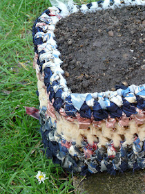I happily planted my sweet peas, it wont last forever but I figured why not brighten up an old wicker tub, I made a lining using a plastic bag;-)
