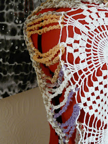 Inspired by a cardi that I had seen in Primark (two mentions;-() I decided to construct my own but using one of the many vintage doily's that I have collected.