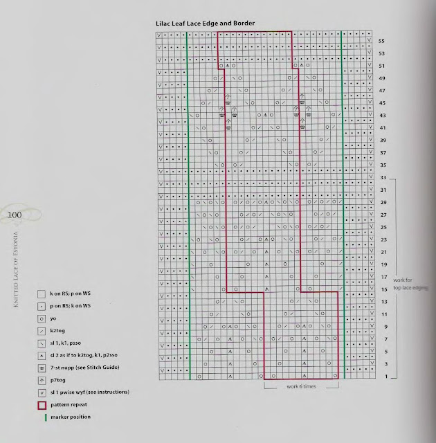 I find that knitting from a chart is much easier than knitting from written instructions. And here is a lace knitting chart for all those who care about this shawl