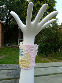 So here it is a little Paper, pastel lace glove, well that's the look.....It's a paper Bangle that really is only fit For a Madonna character of the 80's.