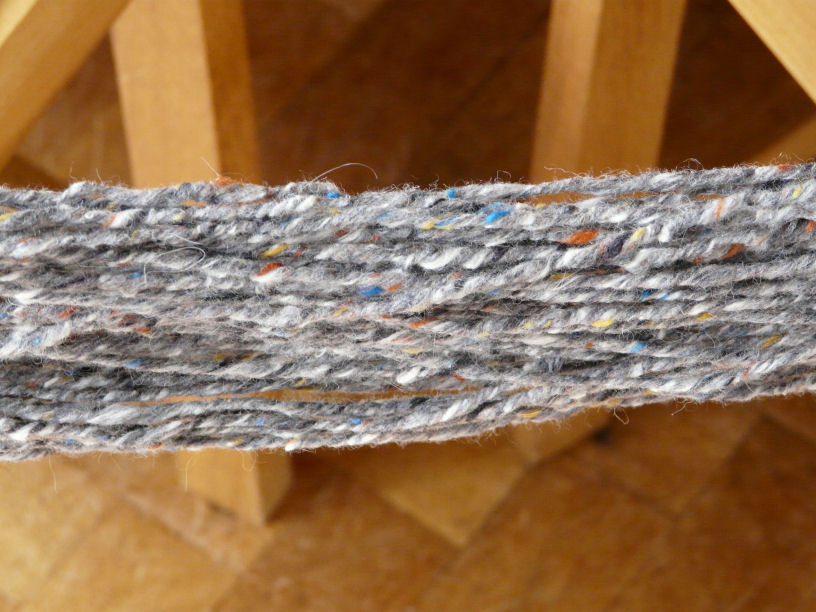 Thick chunky yarnAppears rough but when wound woollen soft.